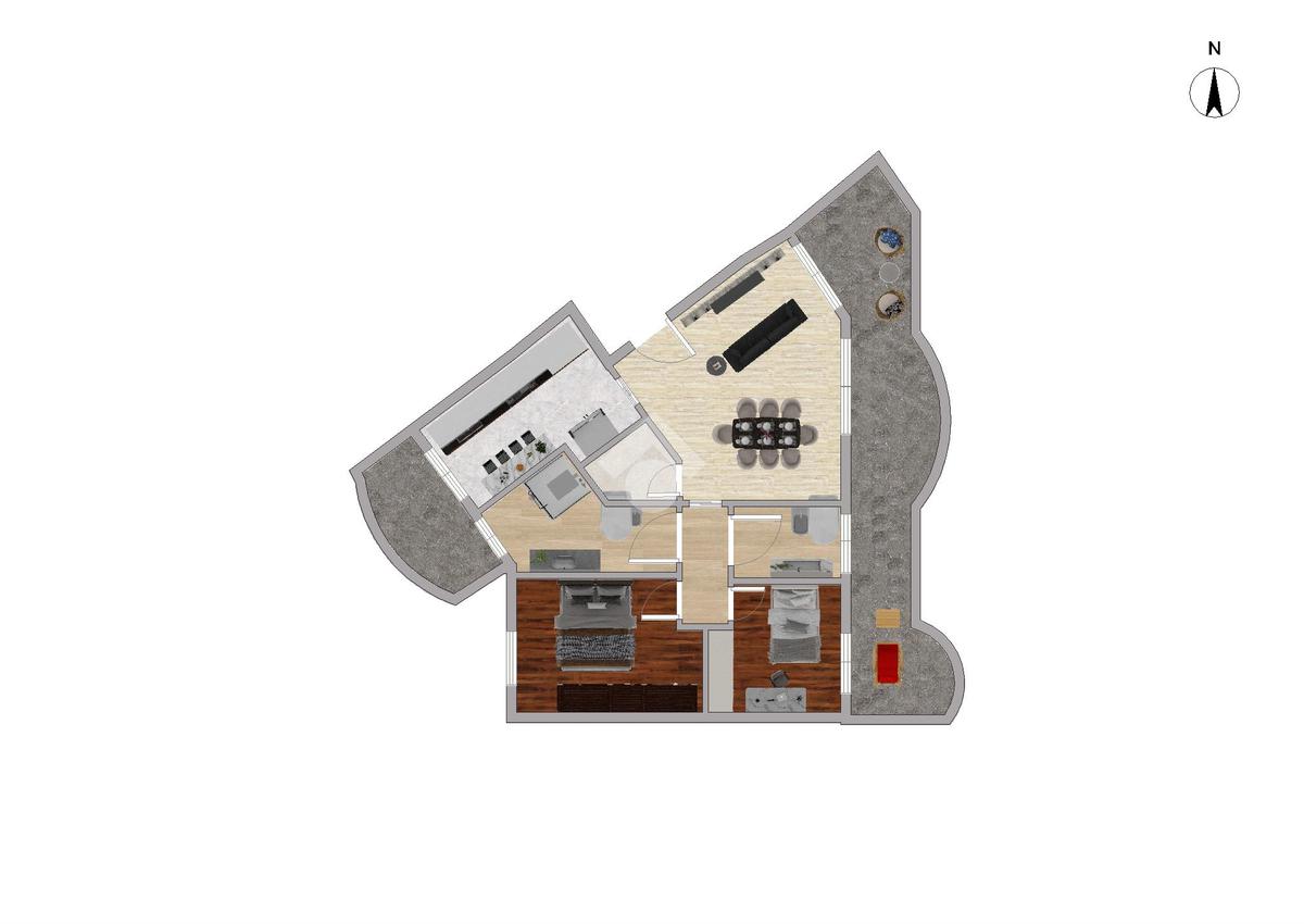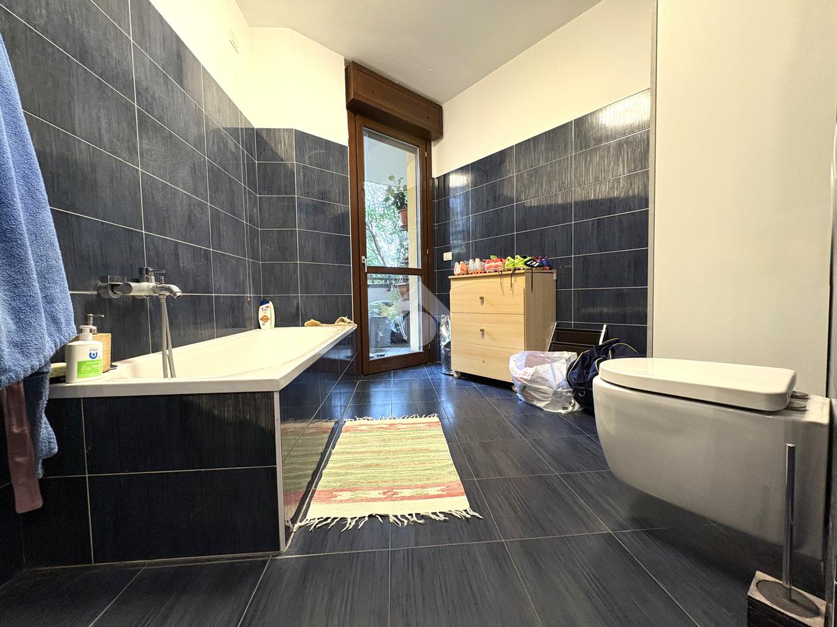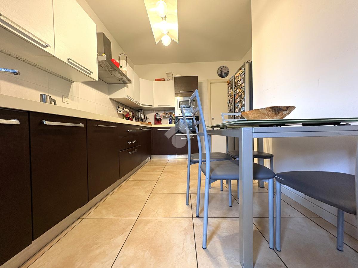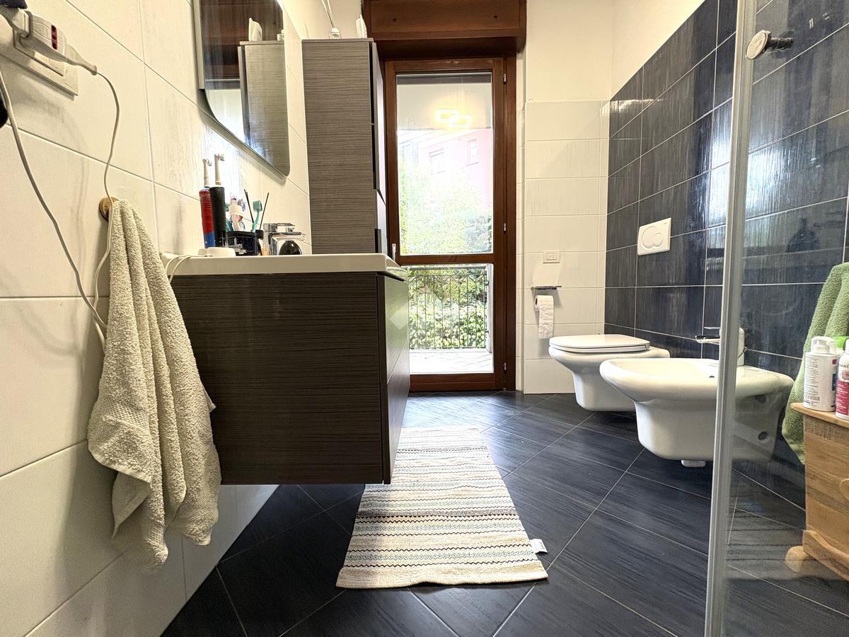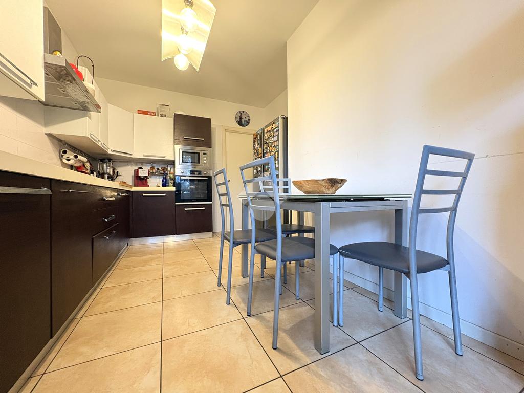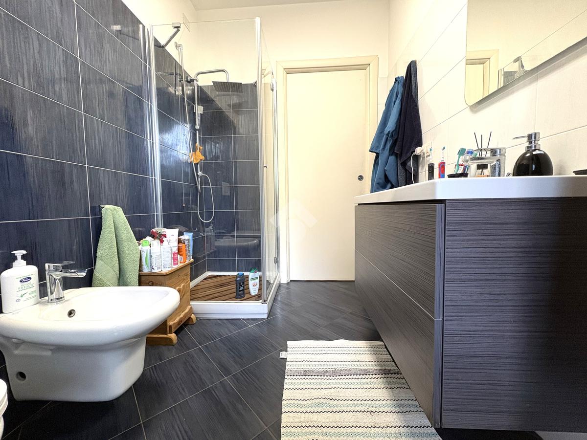 Luminoso. Appartamento composto da: soggiorno, cucina abitabile, due camere, doppi servizi (entrambi finestrati) e ripostiglio.