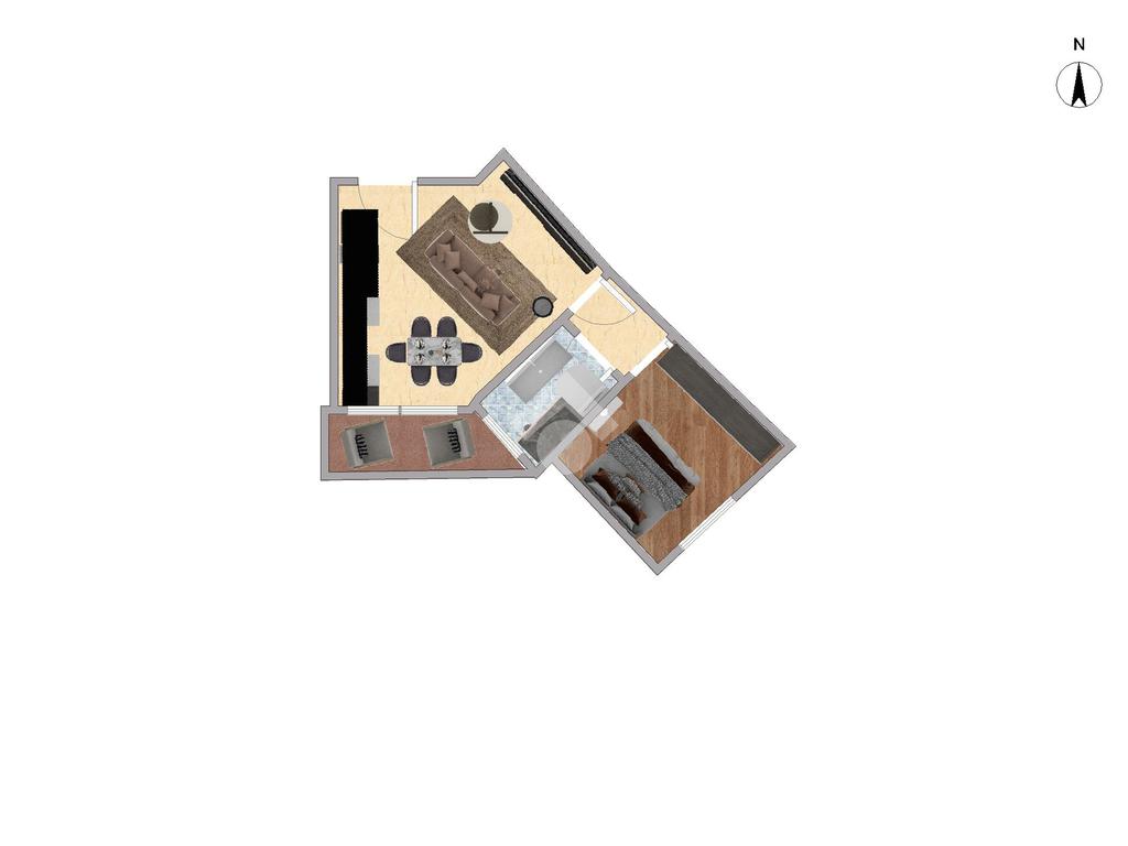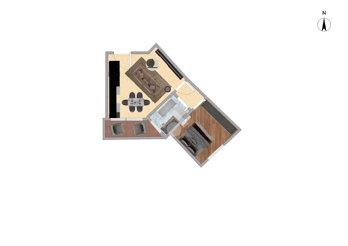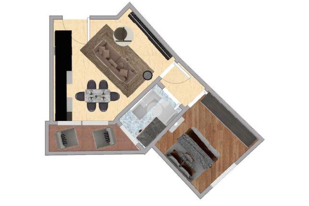 Composto da: un’accogliente soggiorno con cucina a vista, con accesso diretto al terrazzino, camera e servizio.