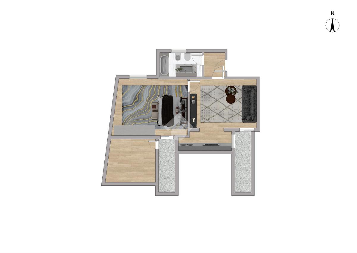 Ampio due locali composto: ingresso, soggiorno con angolo cottura, camera matrimoniale e servizio.